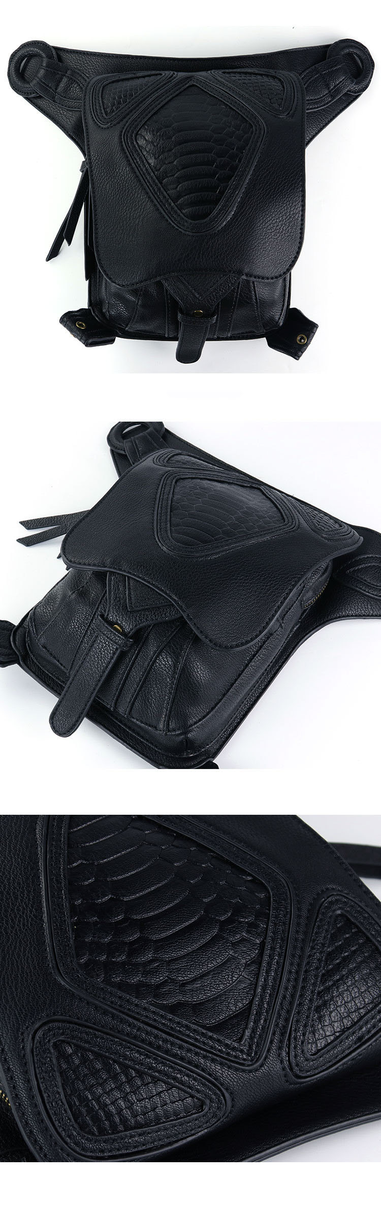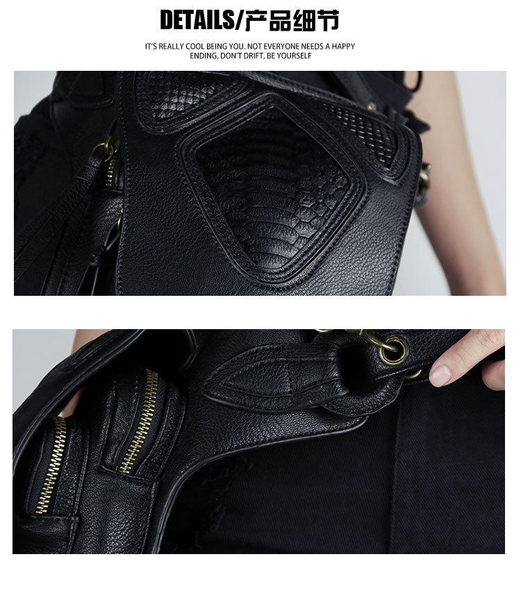 Nex Products: Black Steampunk Women Waist Bags PU Leather Rivet Men Motorcycle Bag